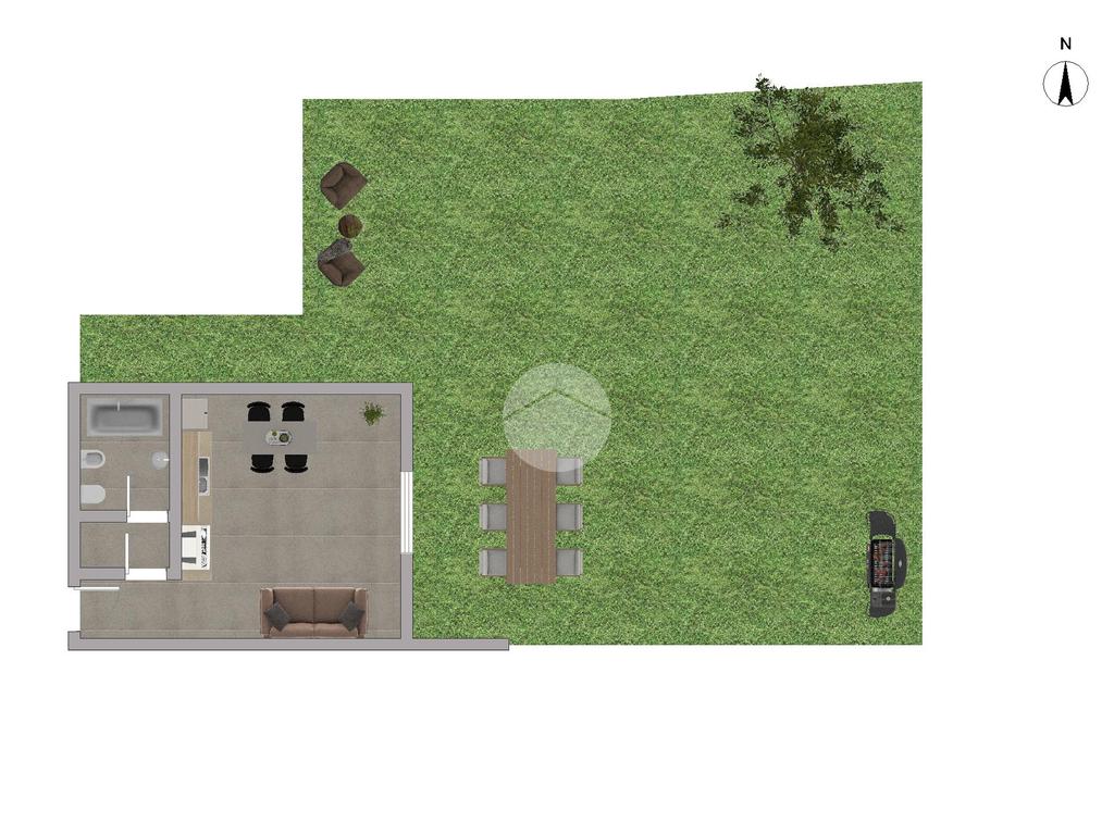 Ad arricchiere la proprietà, un ampio giardino piantumato con area barbecue, perfetto per momenti di relax all'aperto.