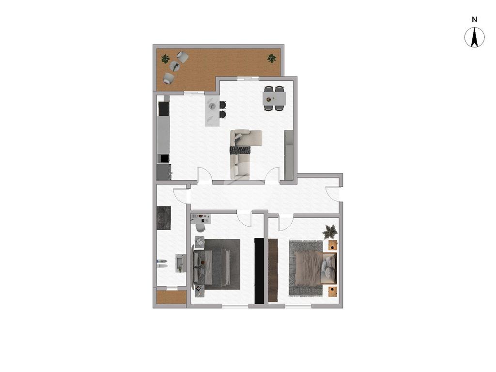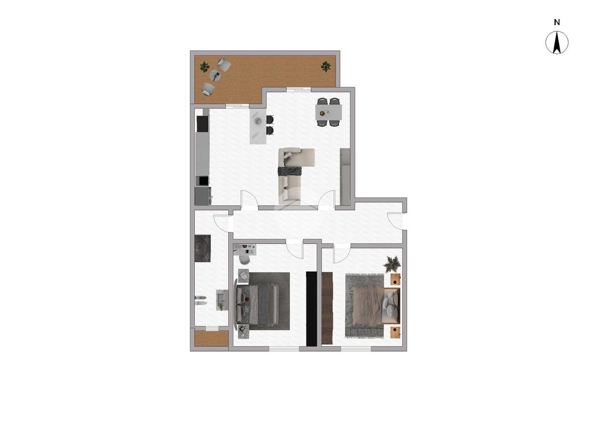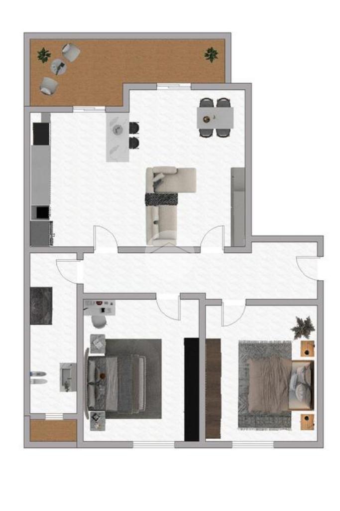 La zona notte invece è composta da due spaziose camere da letto. Bagno finestrato con doccia e secondo sfogo esterno.